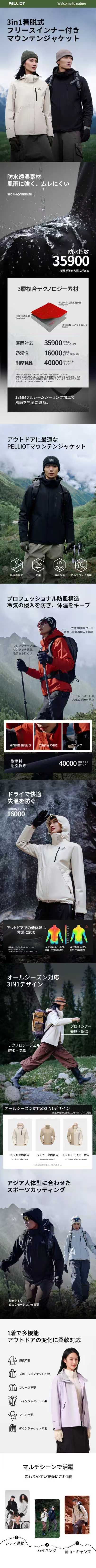 PELLIOT(ペリオ) 3in1着脱式 マウンテンジャケット(フリースインナー付き)